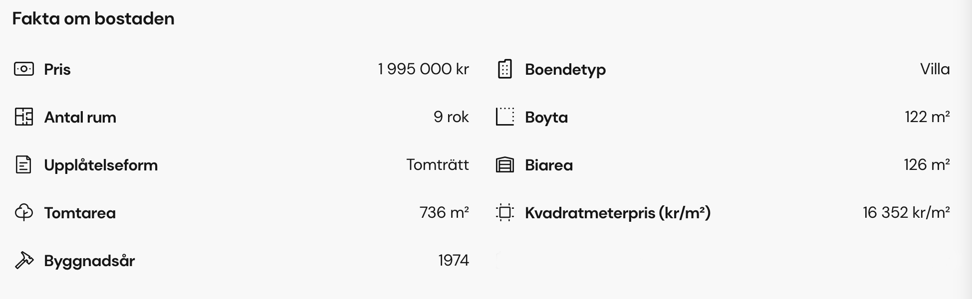 Några info om huset och mäklare websidan :